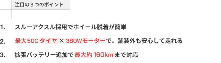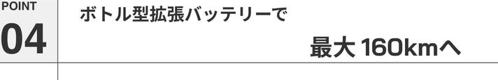 そして、ボトル型の拡張バッテリーを追加すれば、アシスト航続距離は最大約160km。