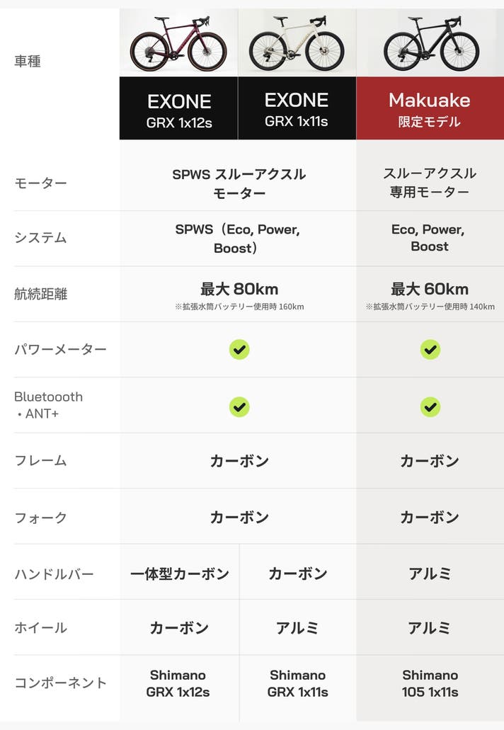 自然なペダリングフィールとスポーティーな走行性能を追求した SPWSシステム搭載の「EX ONEシリーズ」 と、日常使いに適した、コストパフォーマンスに優れた スタンダードなアシストを採用した「Makuake限定モデル 」です。