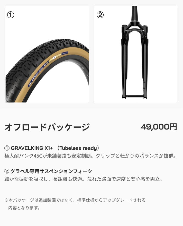 ボトルやバッグ、ツールなどを用途に合わせて自由に装備でき、ライドスタイルや旅の目的に応じたカスタマイズが可能です。