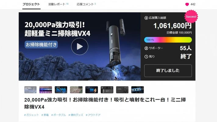 リターン品の配送が完了するまで、当社は「ミニ掃除機D-28」が日本における独占販売権を有する正規代理店です。詳細に関しては、ページ下部のリスク&チャレンジをご確認ください。
