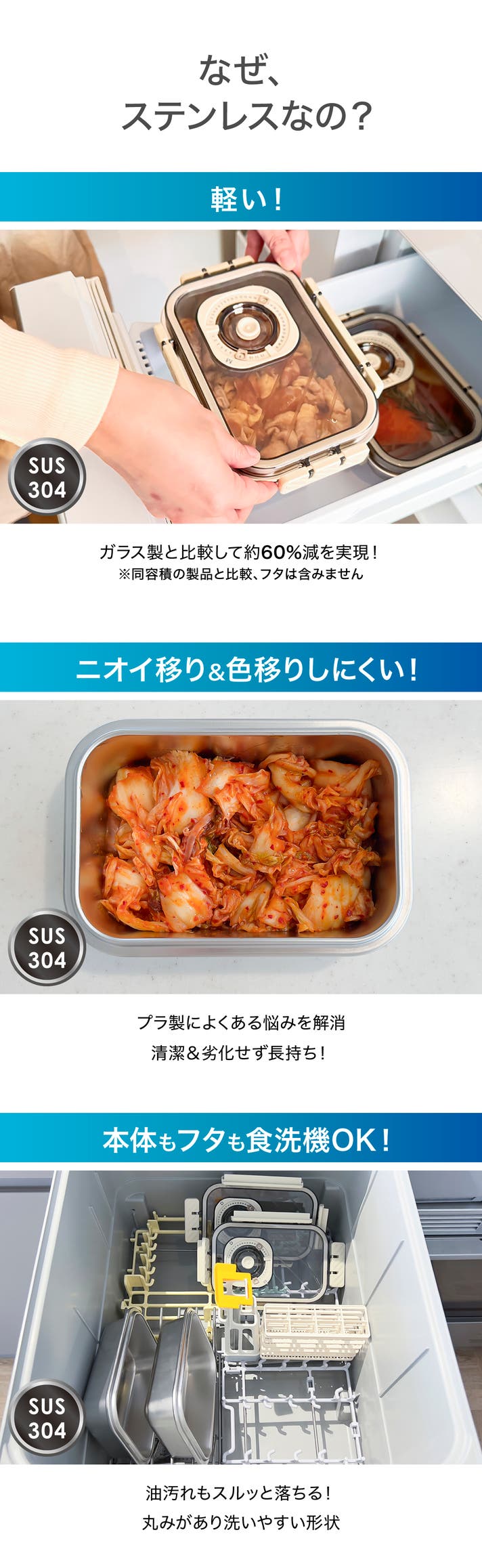 - ✅ 本体:ステンレス✨→軽くて割れない & ニオイ・色移りしにくい フタまで食洗機/冷凍庫OK