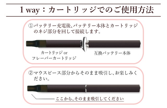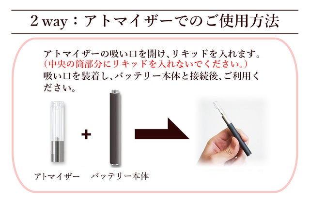 ①カートリッジでも、②アトマイザーでもご使用いただけます。また接続も簡単です。