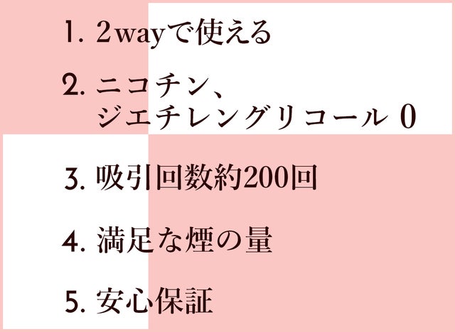 有害物質を含まないフレーバーリキッドを同梱しますので、タバコに抵抗がある方、タバコをやめたいけど口寂しくてなかなかやめられない方などにおすすめです。体に優しい味と香りをお楽しみください。