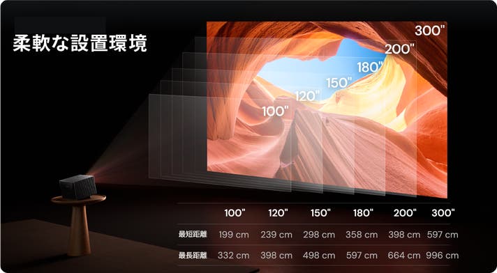・40〜300インチの投影が可能