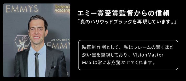 VisionMaster Maxは、限りなくリアルな映像を追求し、ホームプロジェクターの体験を“極上のエンターテインメント”へと引き上げます。映画の臨場感、ゲームの没入感、そして思わず体が動き出すほどの高揚感。もはや“観る”だけでは終わらない。映像はついに、心を震わせる芸術へ。