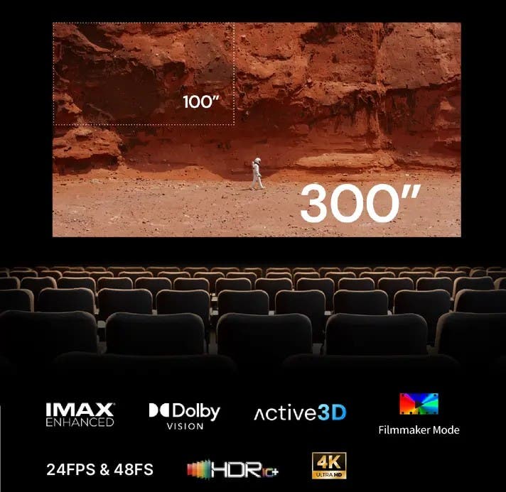 自宅がハリウッド級のシアターに変身。300インチの本格的な映画体験を支える多彩な先端技術のホームエンターテイメント規格にフル対応。シネマクオリティをホームプロジェクターが実現しました。