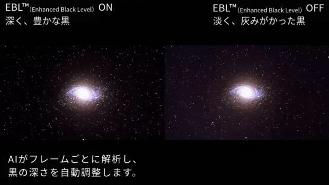 漆黒の闇から黒光りまで「黒を操る」独自技術、NoirScene™システムはEBL™(Enhanced Black Level)技術と6段階精密IRISを搭載。
