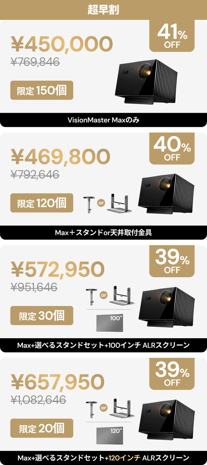 【超早割39%OFF】Max+選べるスタンドセット+100インチALRスクリーン