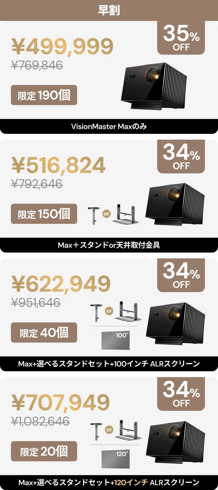 【早割34%OFF】Max+選べるスタンドセット+120インチALRスクリーン