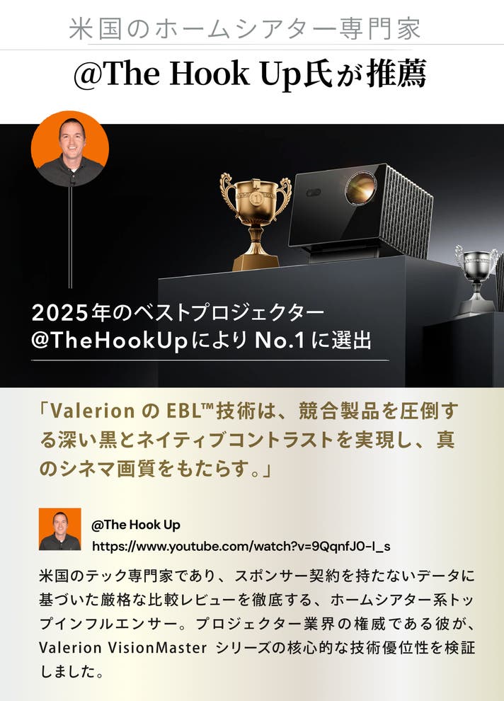 Valerionは映像体験を“誰もが自由に楽しめるものに”の思いから誕生た「ホームシネマプロジェクター専門ブランド」です。2025年、世界最大級のテクノロジー展示会であるCESにて、複数の権威メディアが選出する「Best of CES」賞を獲得しました。次なる挑戦の舞台は、日本です。
