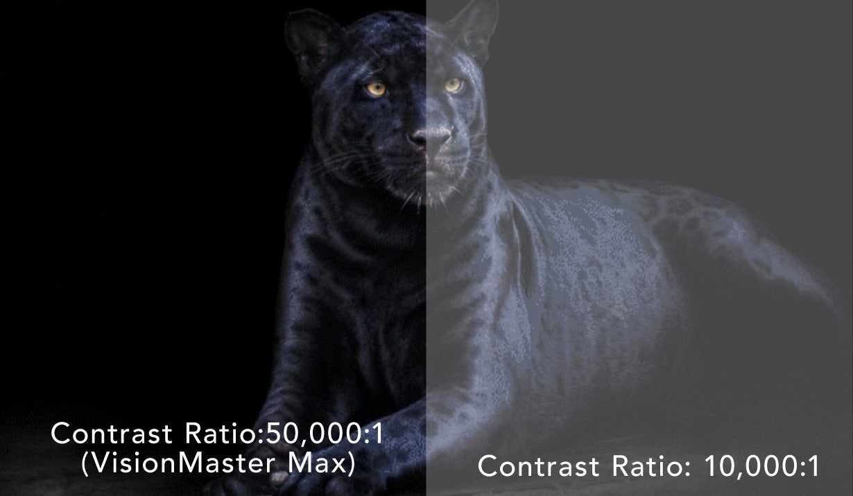 VisionMaster Maxは“黒の美しさ”を徹底的に磨き上げたモデルです。暗部がつぶれない深い黒と高いコントラストで、奥行きある立体的な映像を描き出します。