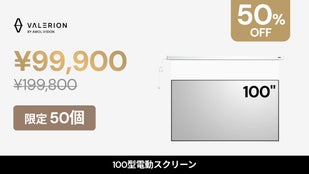 ※100型電動スクリーンでは、Valerion専用スペックル低減電動マットホワイトスクリーンが含まれます。