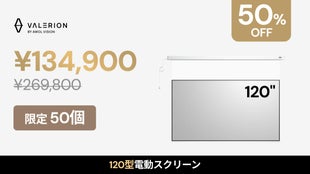 ※120型電動スクリーンでは、Valerion専用スペックル低減電動マットホワイトスクリーンが含まれます。