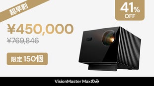 A. VisionMaster Max は、RGB純三色レーザーによる圧倒的な色表現、Provision Engine™ による高精細な映像処理、高音質スピーカーを備えたハイエンド長距離投写プロジェクターです。ホームシアター、ビジネス、アウトドアなど、あらゆるシーンで最高クラスの映像体験を手軽に実現できます。