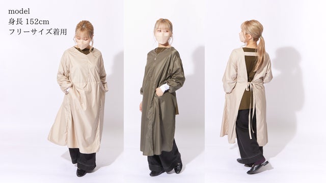 - 「日本で作る」生地も縫製も全てメイドインジャパンの長袖ワンピースのようなエプロン!