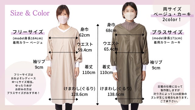スリット入り長袖エプロン(プラスサイズ・ベージュ)1着