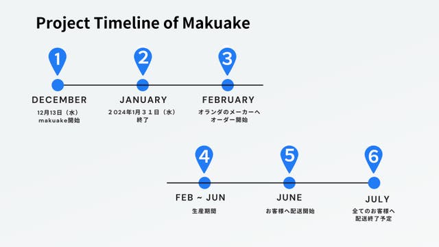 並行輸入品が発生する可能性があります。正規以外での個人輸入等は、完全に防ぐことができない場合がございます旨、予めご了承のほどお願いいたします。 並行輸入品は正規代理店による製品保証を受けることができません。 また、正規代理店を通じて購入することで、日本国内での流通に必要な各種認証の取得や、関税の適切な処理が担保されます。 本文中に記載させていただいたスケジュールは、あくまでプロジェクト公開時点の予定です。応援購入の性質上、配送遅延のおそれがございます。 本文中に記載させていただいたスケジュールは、あくまでプロジェクト公開時点の予定です。 応援購入の性質上、配送遅延のおそれがございます。 原則として、配送遅延に伴う応援購入のキャンセルはできませんが、 リターン配送予定月から 6ヶ月 を超えた場合には、希望者に限りキャンセルにて対応させていただきます。