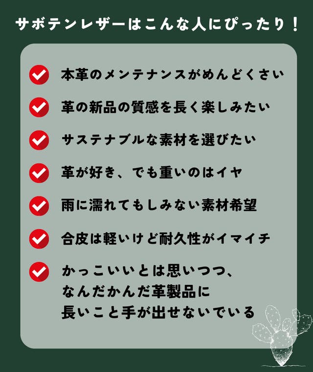 まず「“サボテンレザー”っていったいどんな素材?」という方が大半だと思うので、サボテンレザーについて解説していきます!