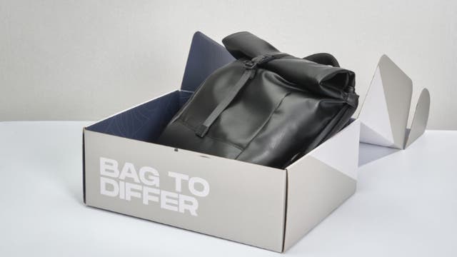 BAG TO DIFFER” 次世代素材サボテンレザーを使用した、今までとは異なるバックパックです。専用のお箱*に入れてお届けします。
