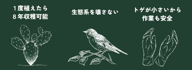 また、サボテンは、他の植物のように大量の水を必要とせず、それどころか他の作物が育たない土地でも生育することができるとても強い植物なのです。