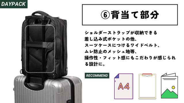 ★‥‥主にショルダーストラップを入れるための背当て部分の収納はDAYPACKのみの機能となります。