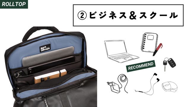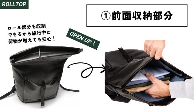 ROLLTOPはROLL部分の収納を解放すれば、旅先で急にお土産荷物が増えても安心です!