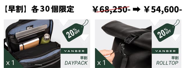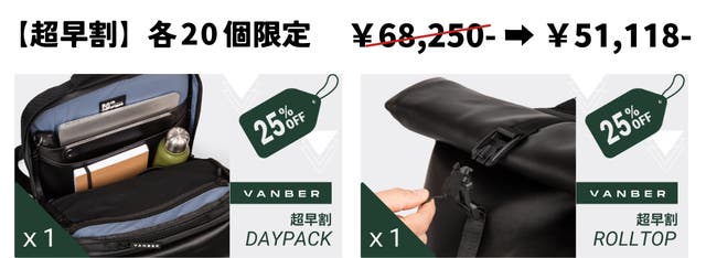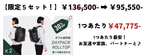 ◆30%OFF◆5セット限定【ダブル超早割】DAYPACK & ROLLTOP