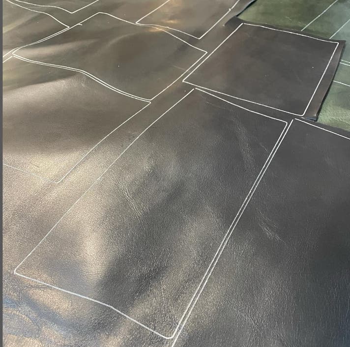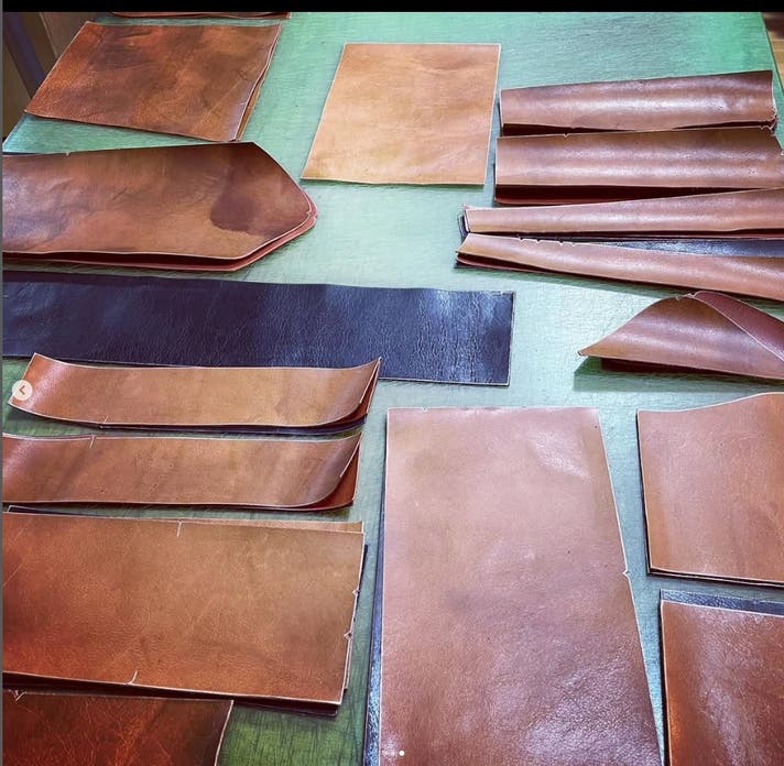 革の裁断は一点づつ型紙で革の状態を見ながら型どりをして裁断しています。