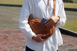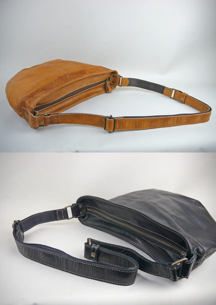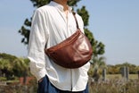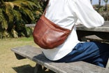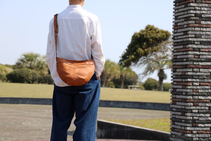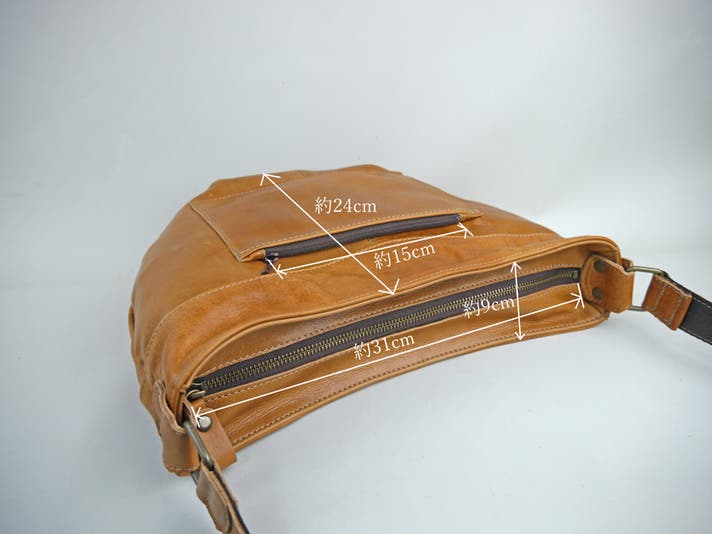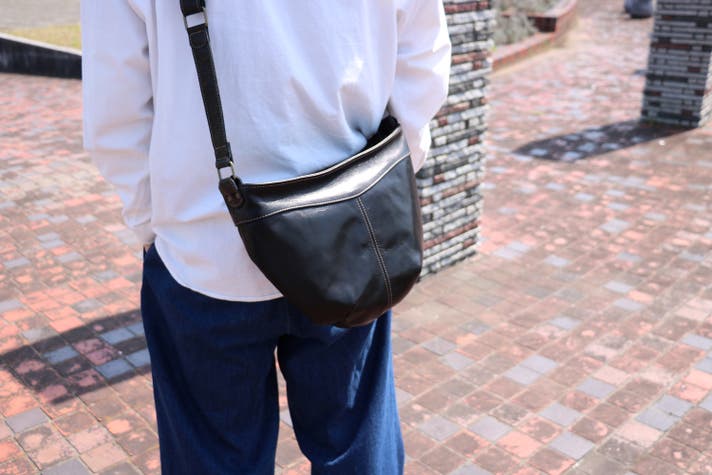 今回、ショルダーバッグは短めに肩にかけても通常の長めにしても、さらに前で持つ時でも体の線にフィットして違和感のない使い勝手の良い牛革のショルダーバッグです。