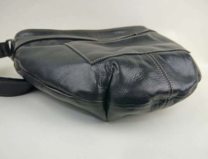 このバッグの大きな特徴である、オイルを多く含み、くったりとした柔らかな革。