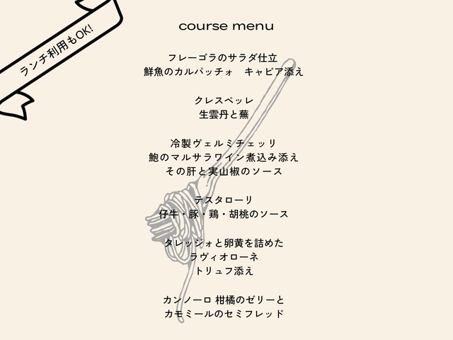 そんなパスタの魅力を知る機会があまりにも少ないと日頃感じており、ぜひvannoで初めてのパスタ体験をしていただくことができたら嬉しいなと思い、コースの制作に至りました。