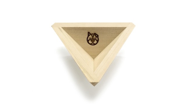 戦国武将の使う杯をイメージして作られた三角形のおちょこ。