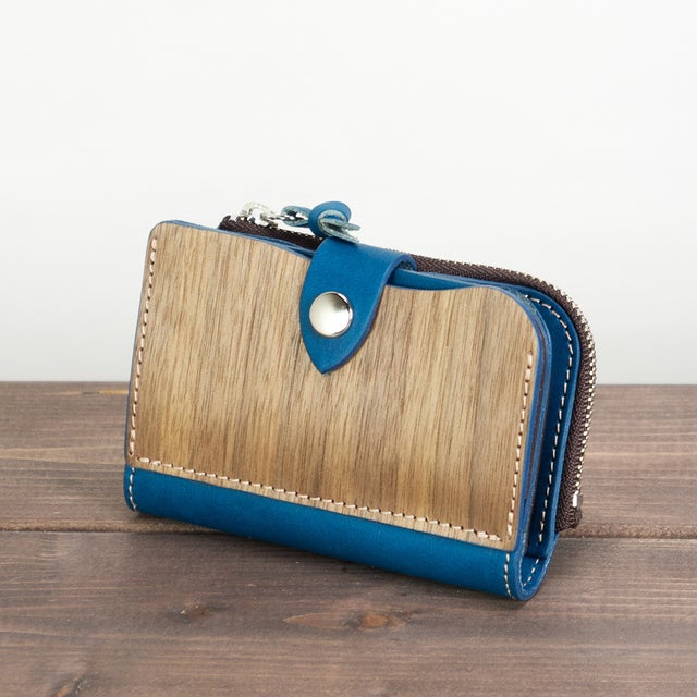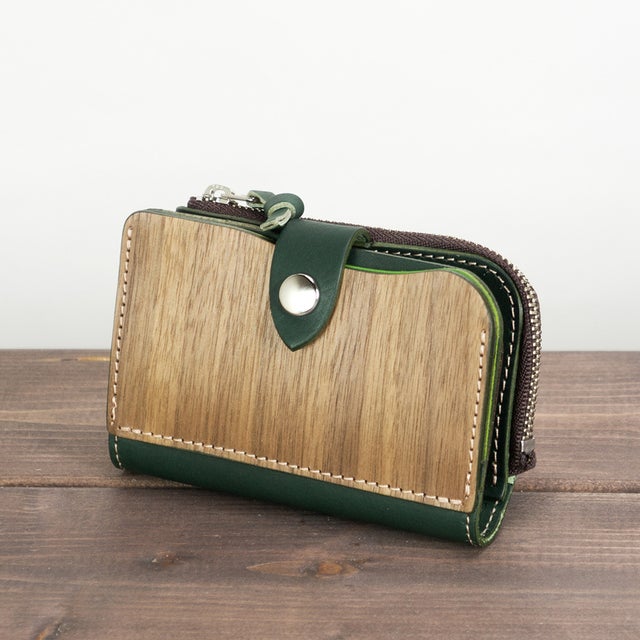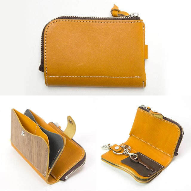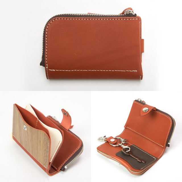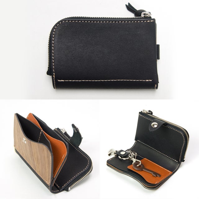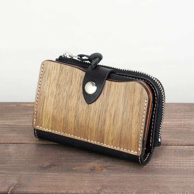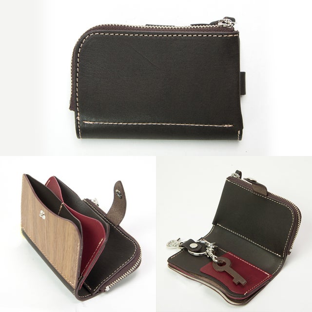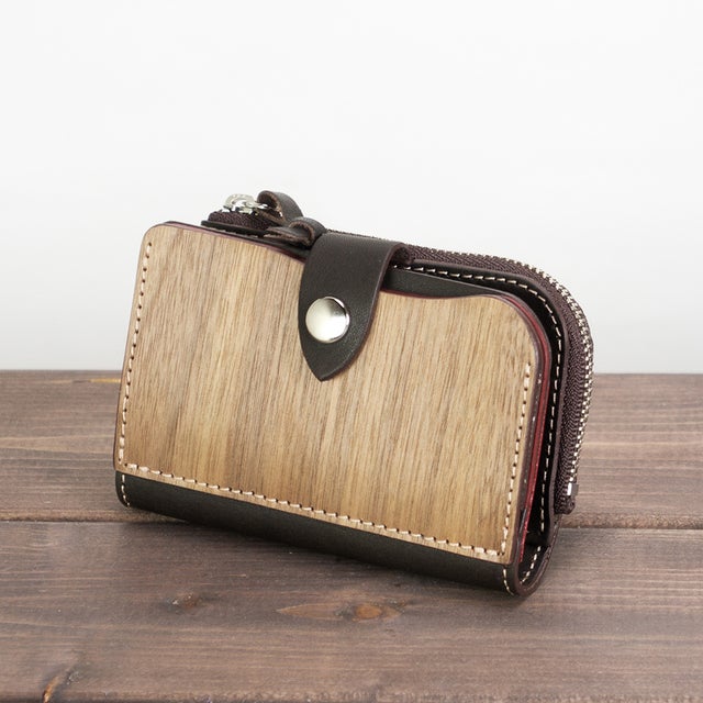 天然木と手染レザーで作られた、鍵・カード・小銭・お札が全て収納できる欲ばりなキーケース。