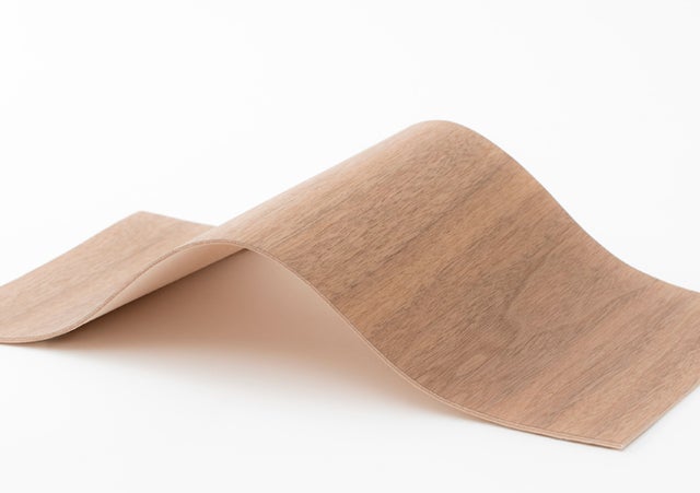 0.2mmという極薄にスライスした天然木(ウォルナット)を縫製しても割れないよう特殊な加工を施し革と貼り合わせる事により、柔軟性と耐久性のある木素材を実現しました。家具でも人気のある三大銘木のウォルナットは革との相性が抜群です。
