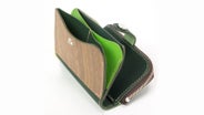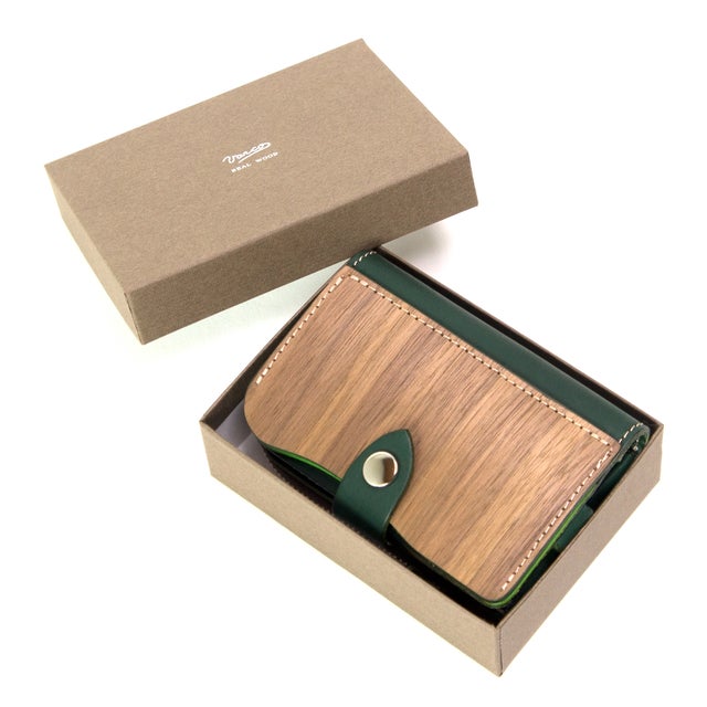 ウッドポケット部分は立体的なフォルムと配色がおしゃれな蛇腹式のカード収納になっています。ウッドと革を合わせた素材ですが、ICカードもご利用いただけます。
