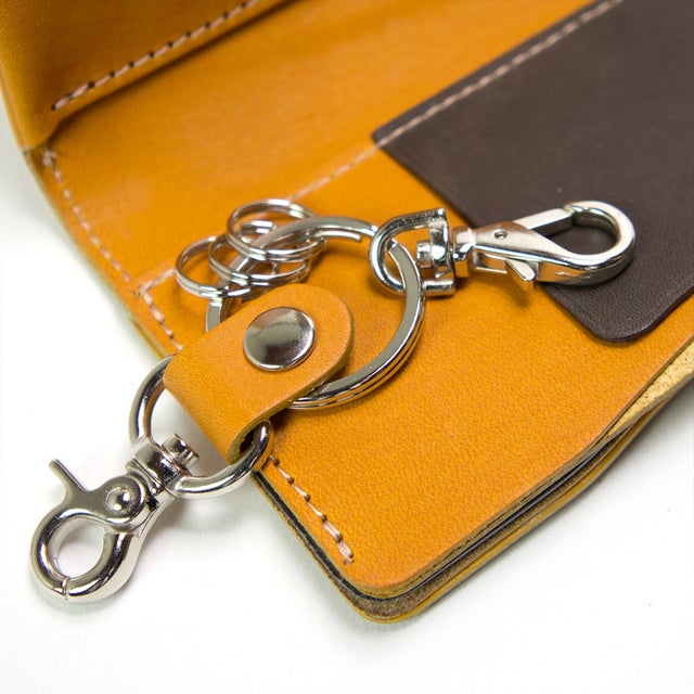鍵を取り付けるキーリングには小キーリングが3個とレバーで開閉するナスカンが付いています。小型・中型サイズの鍵を複数付けたり、スマートキーを取り付ける事もできます。