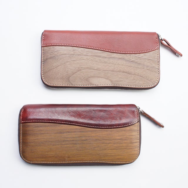 画像は同VARCO REAL WOODシリーズのラウンドジップウォレット【レンガ】を
