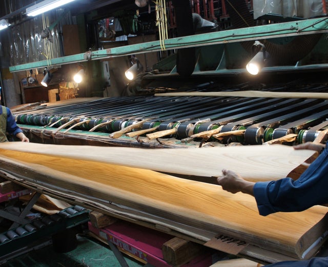 ▲ 木のスライス作業