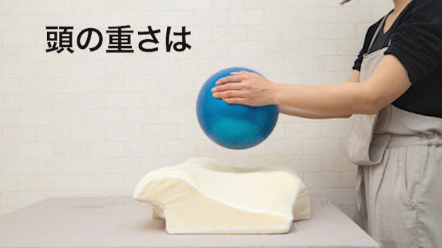 私たちは、人の頭の重さがおよそ5.6KG(ボーリングの玉ほどの重さ)もあり、横になった時に頭の自重が首や肩周りに強い負担を強いていることに着目しました。