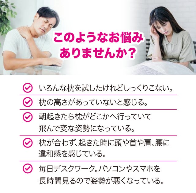 特に、日中は最も重い頭部を支え続ける首周りの筋肉を しっかり休めることが、休息のカギとなります。