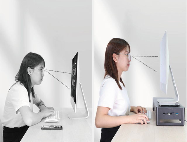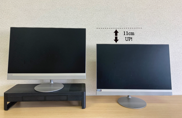 「Vaydeerモニターデスク」を使いますと画面の位置を約11cmアップし、モニターを適切な高さで使用することで、背筋が伸び、正しい姿勢で作業しやすいため、首や腰など体の負担軽減にも繋がります。