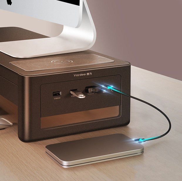 「Vaydeerモニターデスク」は右側にUSB端子4口備えて、ポート不足を解消してくれます。