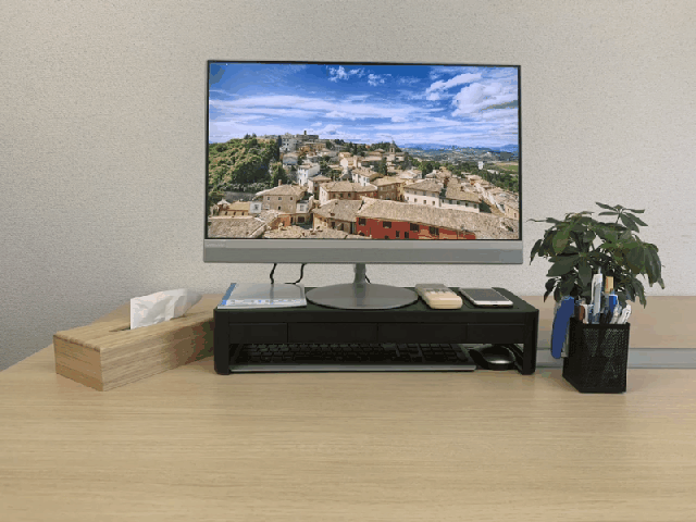 - モニターデスクに引き出しをプラス、デスク周りの小物収納・保管・机の掃除楽々!