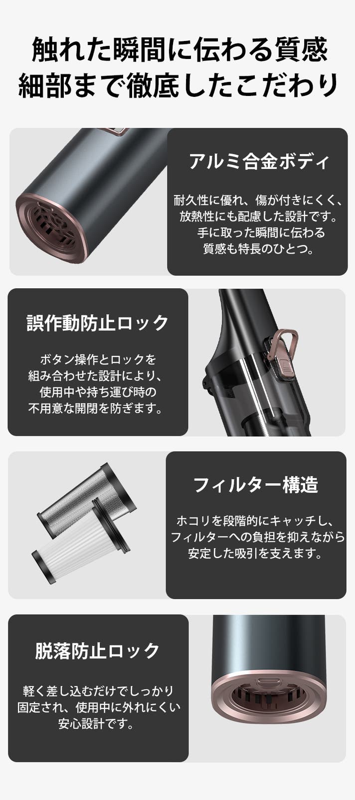 「Makuake(マクアケ)」は、実行者の想いを応援購入によって実現するアタラシイものやサービスのプラットフォームです。このページは、 プロダクトカテゴリの 「【これ一本で吸引から圧縮まで】掃除の常識を覆す!コードレスミニ掃除機|VC013」プロジェクト詳細ページです。