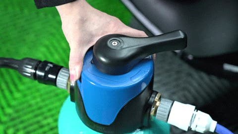 従来の純水器では、洗車の途中でホースを抜き替える必要がありました。