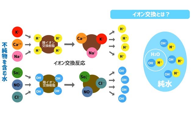 このプロセスは、工業用洗浄や光学レンズの洗浄にも使われるイオン交換法と同じ原理。