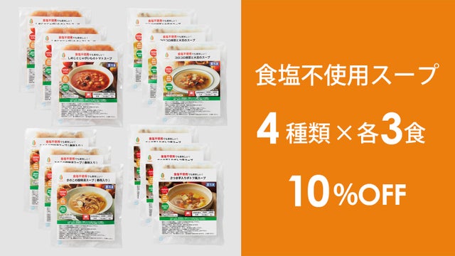 しっかり食塩不使用スープを楽しむ!食塩不使用スープ(4種類)各3食セット