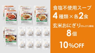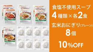 食塩不使用スープ(4種類)各2食+玄米おにぎり(8個)