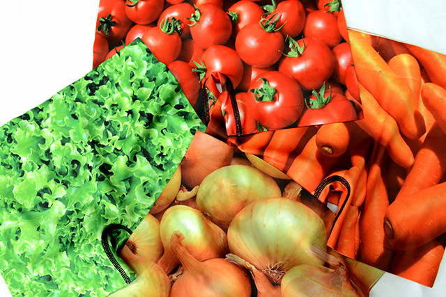 ①それぞれの野菜をほぼ実寸大で鮮やかにプリント!