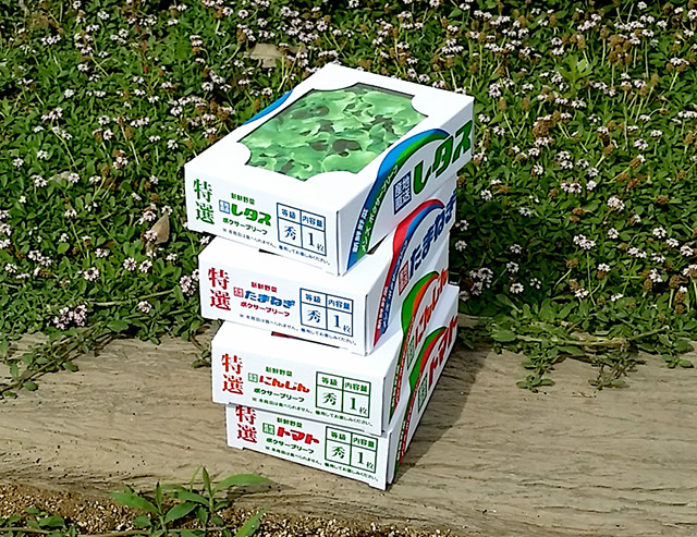 最近、スーパーマーケットの隅っこに積まれている野菜の出荷箱に目が留まり、